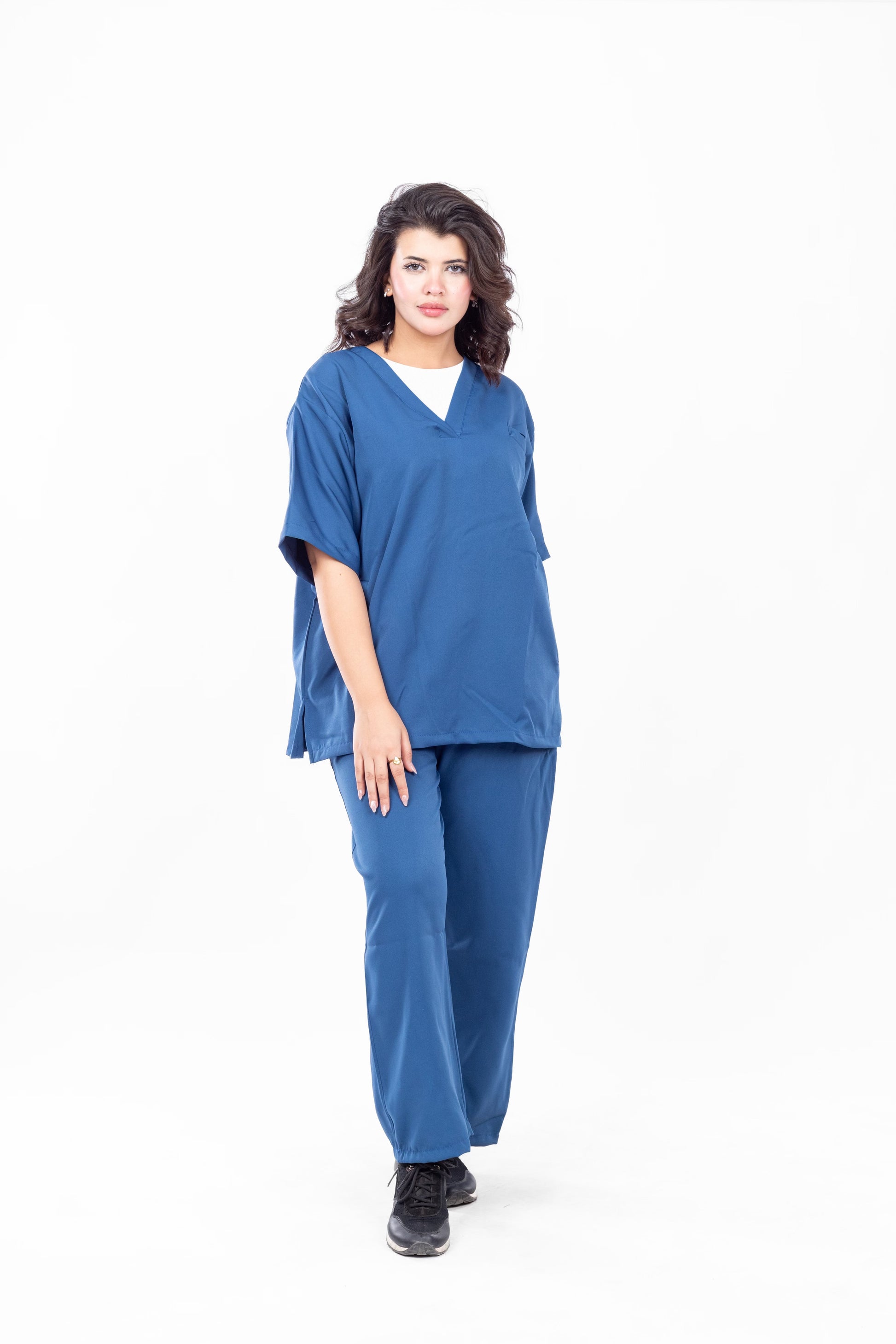 Lightweight and breathable, this unisex blue V-neck scrub (short sleeve) ensures all-day comfort and professional style. Durable and wrinkle-resistant for busy shifts.